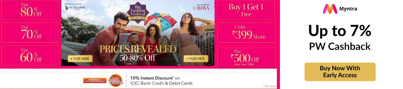 Buy online everything you need to show off in front of your friends with the Myntra Big Festive Sale 2020. With Myntra you will never go out of fashion, it...