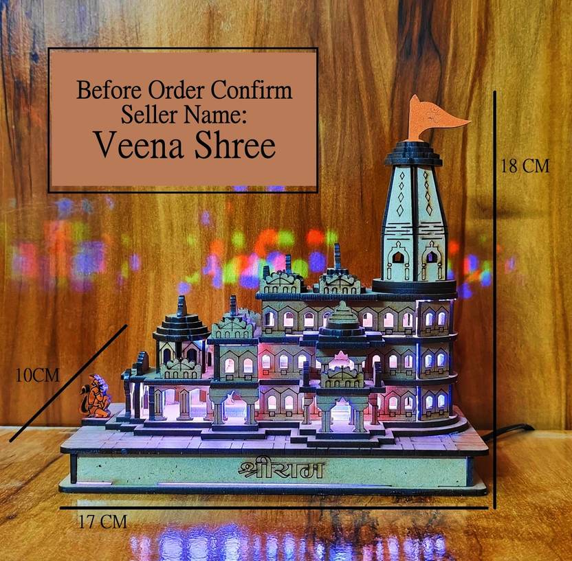 | VeenaShree LED Light Ram Mandir Wooden 3D Model 18CM | Detachable & Polished |Veena Shree Decorative Showpiece |