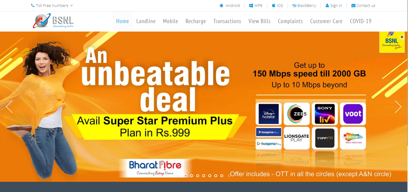 BSNL is the leading government institution body in India, founded on 01 October 2000 by GOI. The company’s primary objective is to provide complete telecom services to the people in India, including internet services and mobile voice services. Networks of BSNL are available across India. BSNL is the only largest Indian government-owned wireless telecommunications network, service provider. The position of BSNL in terms of the largest wireless telecommunications service provider in India is 4th.