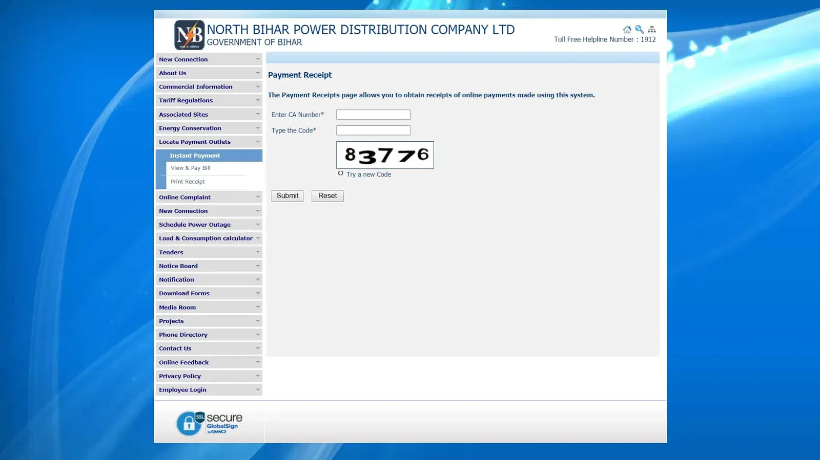 Go to NBPDCL, and click on print receipt. Enter your CA number and also code. click submit.