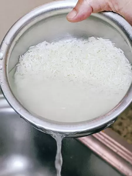Let the rinsed rice soak in the water overnight.