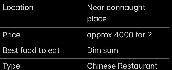 Best restaurant to grab a Chinese meal , if you love Chinese you should definitely visit this restaurant. This restaurant is located near Connaught place. It offers regional Chinese food