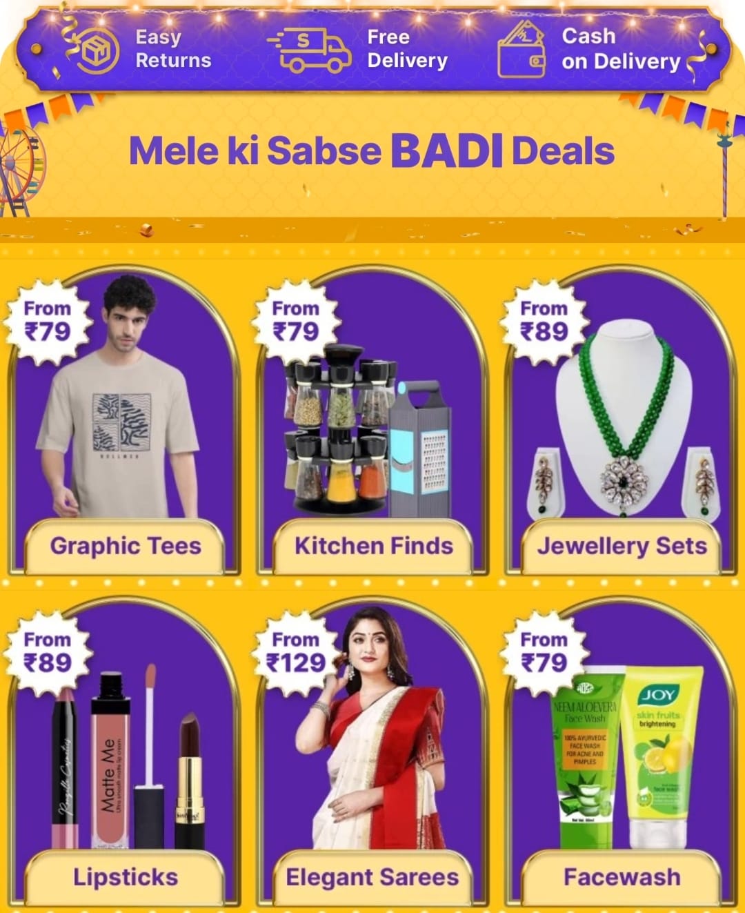 | Shopsy Mela Knock-Out Deals | Starting at Rs.99/- | |