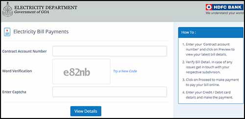 - Log in / register to the Goa Electricity department’s official website to pay your electricity bill online.