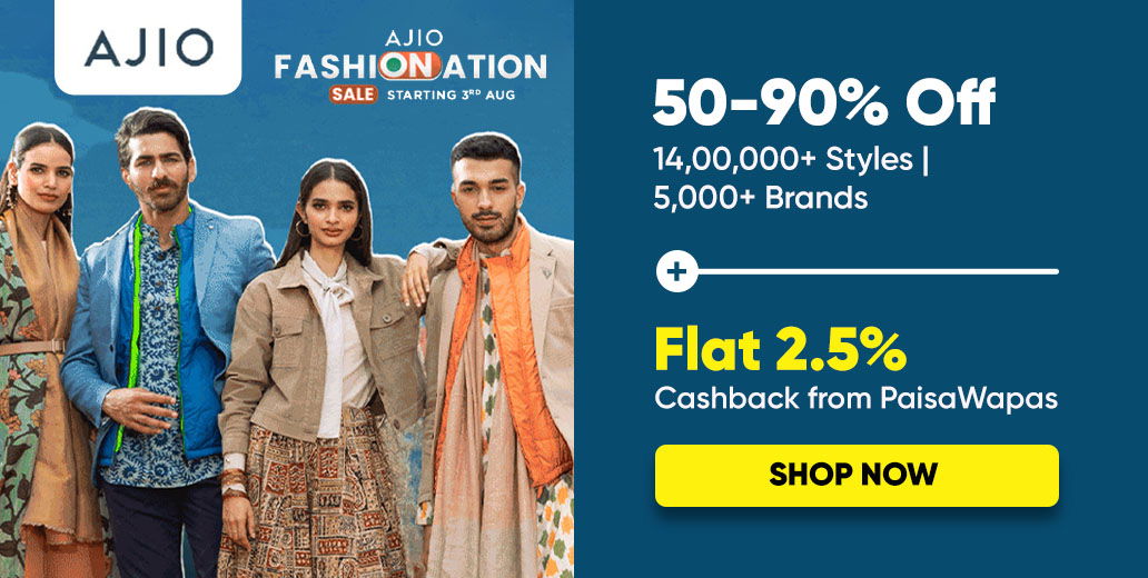 You can find upto 40-70% Off on the top clothing brands in India and great discounts with sponsored banks. Discounts plus discounts on this August 15th, shop using Ajio Coupons from PaisaWapas and Shop more and Save more!