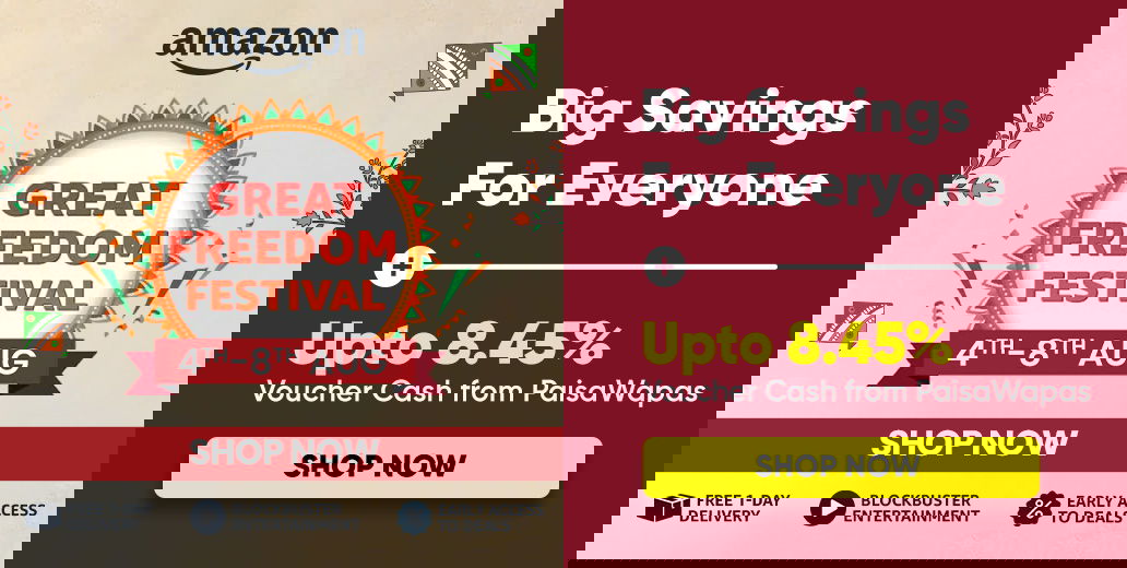 There will be 40% off on smartphones, and 50% off on electronics, from top brands like OnePlus, Philips, VIVO, etc. Fashion Sale will get you 80% OFF on clothing from BIBA, Roadster, Adidas, Puma, and many other top brands. Shop with us to make the most of the Upcoming Sales on Amazon with the Great Freedom Festival 2025