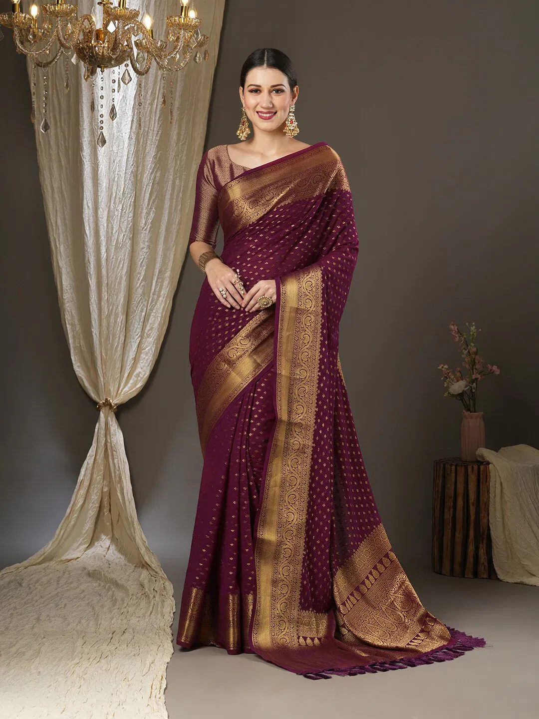 1). Georgette Kanjeevaram Saree Style
