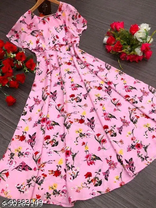 3). Rayon printed Anarkali Long Kurti cum Gown: