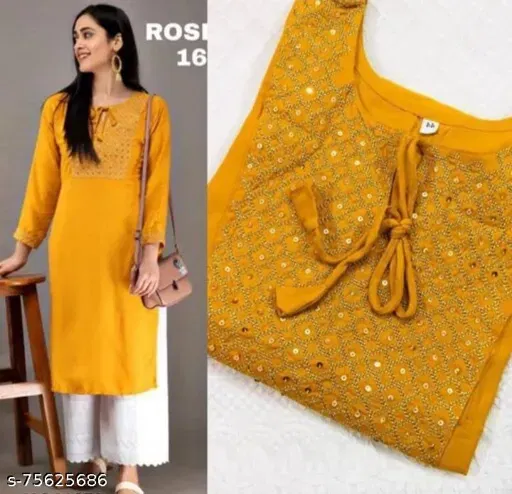 Looking to wear Kurti for hot summer fashion means you should not miss this yellow rayon Kurti under this top 5 Meesho Kurti haul under 300. Sleeves are amazing for covering full arms in this hot summer, and you can avoid tanning by choosing this Kurti.