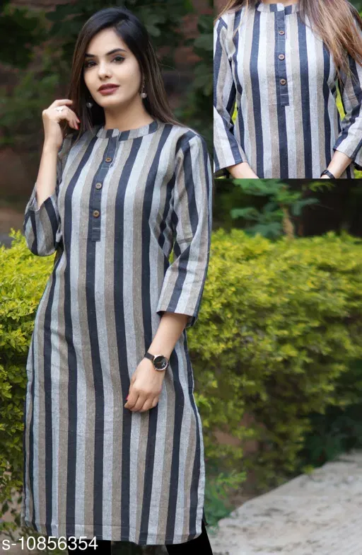 6). Women Khadi Cotton Straight Stripe Kurti: