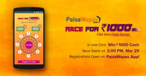 As we all familiar that PaisaWapas has launched its blockbuster cash back App a few days back. (don’t know where to get this app. Download the PaisaWapas app for more fun and extra cash back). PaisaWapas race for Rs.1000 is a contest conducted by the Pisawapas team for their beloved Paisawapas app users. Register in the PaisaWapas app to participate this race. You can get a chance of winning Rs. 1000 and a lot more at the aforesaid date and time.