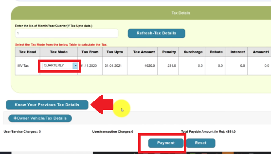 - Then Click on the Payment option to pay your Gujarat Road Tax Bill Online.