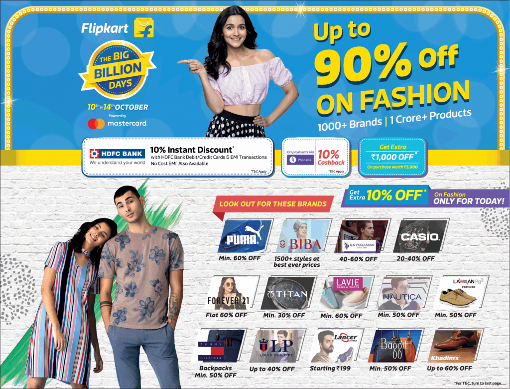 You may definitely like to avail of the 15 Oct 2020 Today Sale and Offers on Flipkart Big Billion Dayon various categories from fashion to electronics and more.