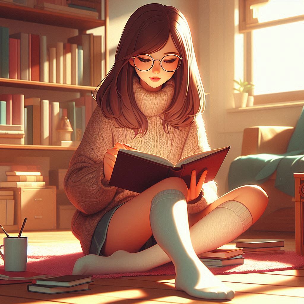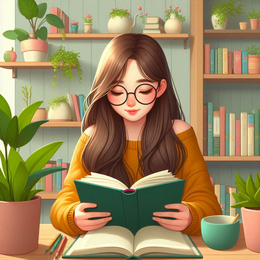 This is one of the cute and sophisticated digital art depicting a girl with long, dark hair and round glasses reading a book. She’s set in a warm, cozy interior with a lamp in the background; her calm face reflects intellect and poise. This DP would suit book lovers, dreamers, or anybody who values their calm and quiet, introspective self, filled with intelligence, charm, and a passion for quiet, meaningful moments.