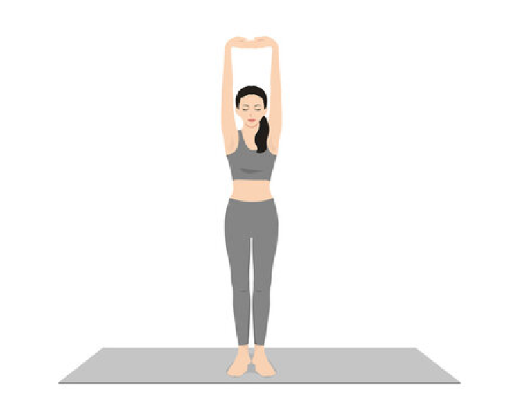 - Make sure you raise your arms ( above your head) and both your hands come together in a way that your fingers interlock